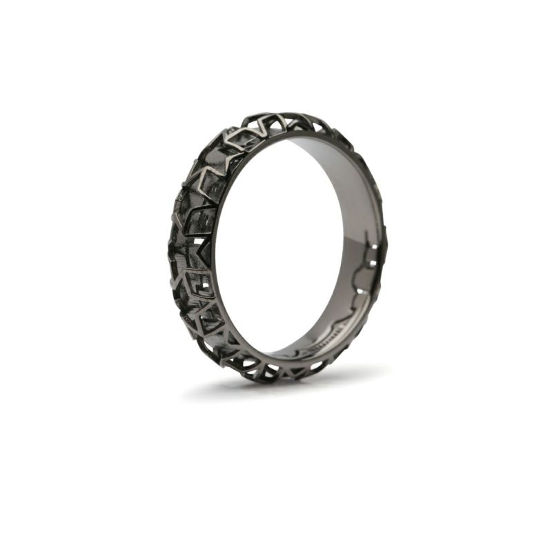 ヴェイパーウェイブのムードをまとい、透かし加工による軽量感とモダンな印象を兼ね備えたリングです。