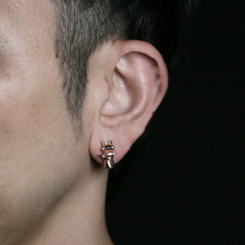 ロッコバロッコ所長のアシスタントのパペット、「シャーロットちゃん」を立体表現したピアス。