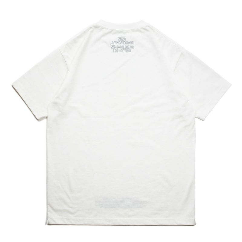 本コレクショングラフィックをポリエステルのシワになりにくさ、乾きやすさと、綿のぬくもりと通気性・吸水性の良さ、静電気の起こりにくさなど、いいとこ取りした万能な生地を使用したジャムホームメイドのオリジナルボディのど真ん中に大胆に配置したTシャツ。