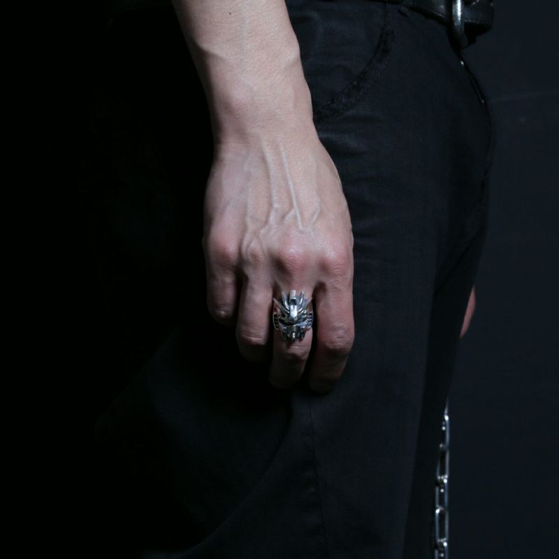 シルバー925の素材特性を活かし、いぶし加工(黒く硫化)させたのちに手仕事で磨き上げた仕上げは、着用するほどにより深い味わいがお楽しみいただけます。