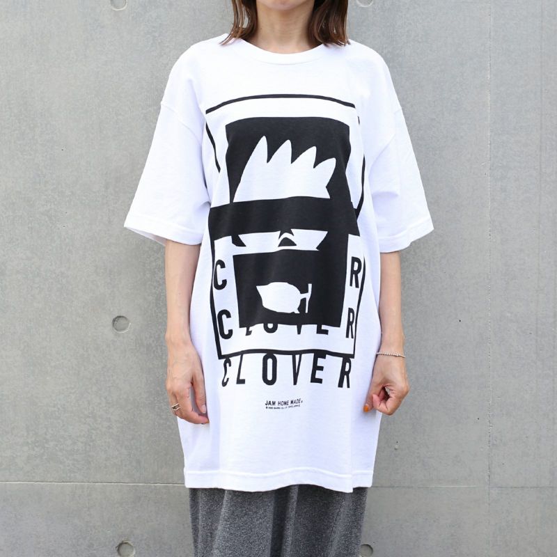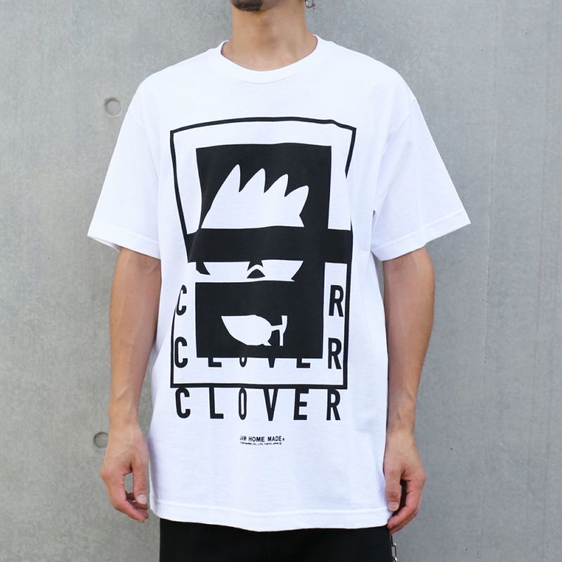 その表現として「愛LOVE」を目隠し黒目線の (黒いバー=黒バー)で隠した大胆なグラフィックに黒バーでEYE(アイ)を隠した幸せの四つ葉のクローバーをモチーフにしたTシャツ。