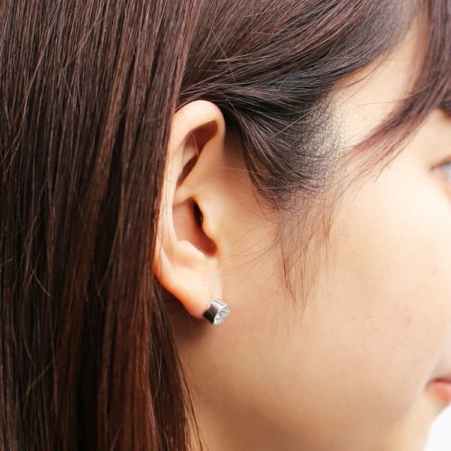 モアサナイトモダンピアス 4mm -シルバー/片耳