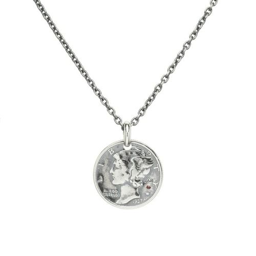 【誕生石】ヴィンテージマーキュリーコインネックレス-シルバー/バースストーン