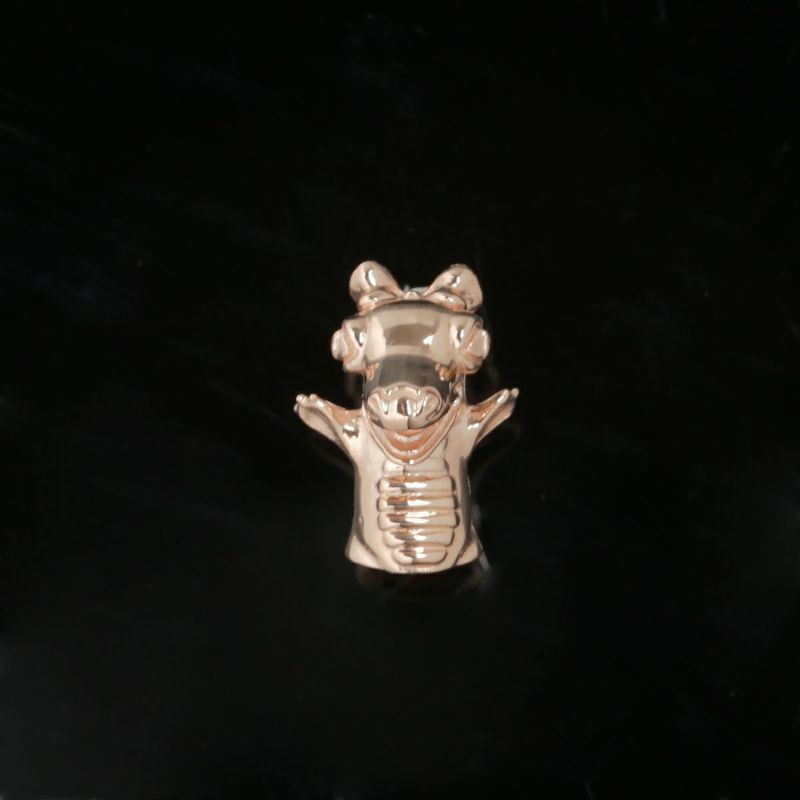 ロッコバロッコ所長のアシスタントのパペット、「シャーロットちゃん」を立体表現したピアス。