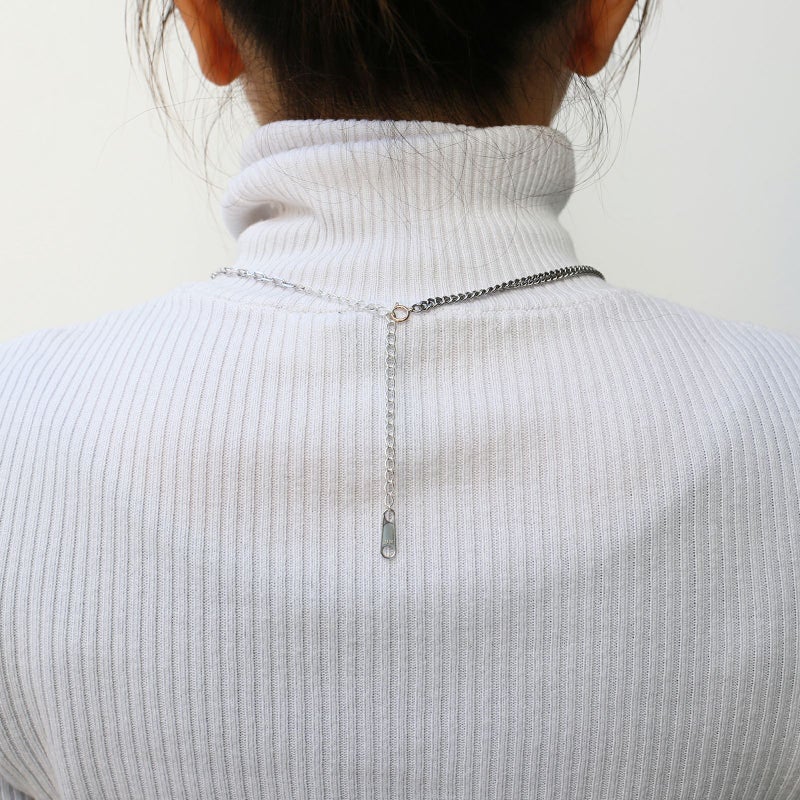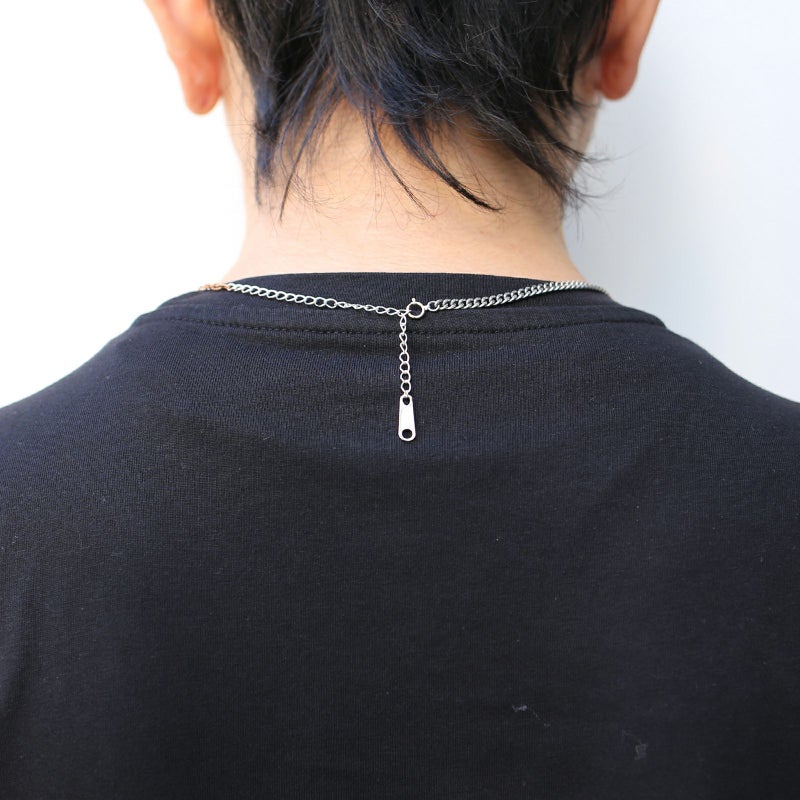 オリジナルの引手パーツを模したオルタナティブプレートを配置し、留め位置を変えることにより長さ調整も自由自在、どのチェーンをメインに見せるか、気分に合わせて変化を楽しめる使い勝手の良いネックレスです。