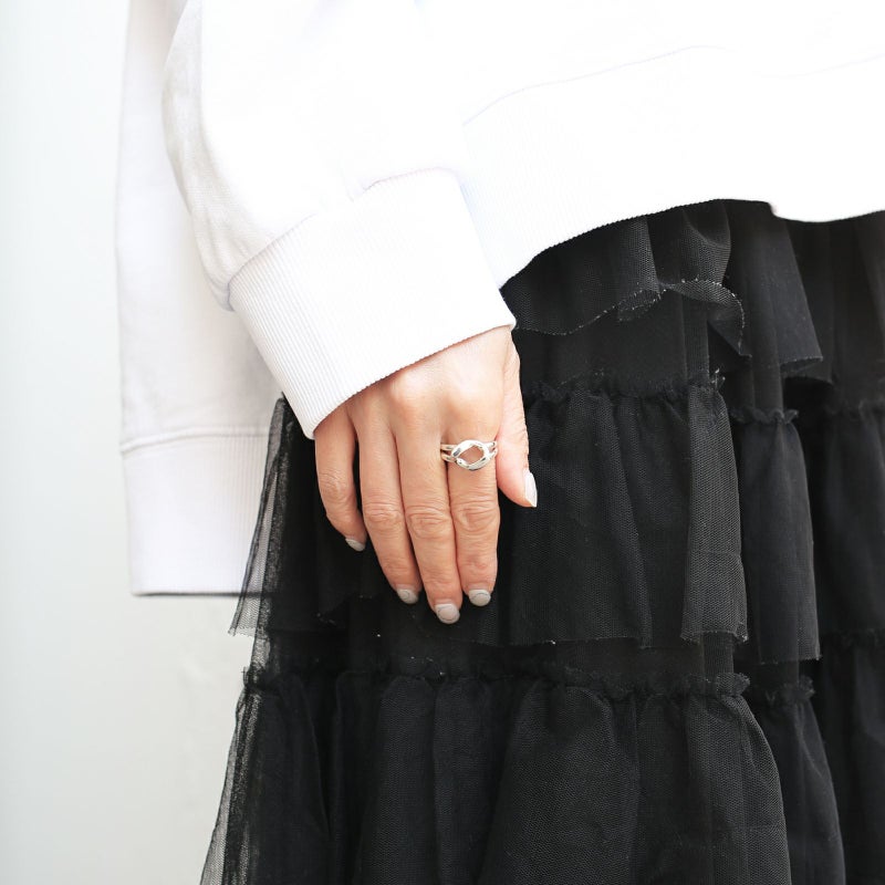 大胆なサイズ感の喜平ピースがシンプルながら力強い存在感を放つフリーサイズリングです。