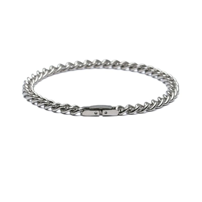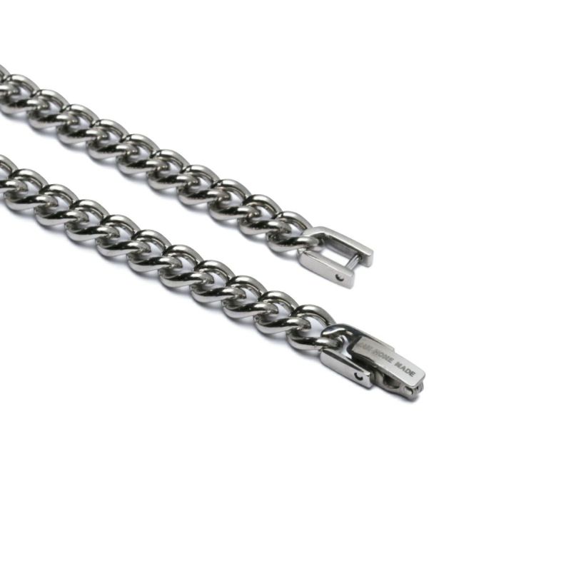 航空機やロケット、人工関節にまで使われる高機能性をそのままにデザインに落とし込んだチェーンブレスレット。