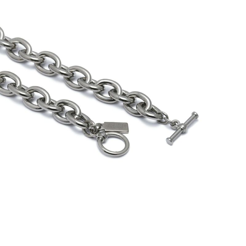 航空機やロケット、人工関節にまで使われる高機能性をそのままにデザインに落とし込んだチェーンブレスレット。
