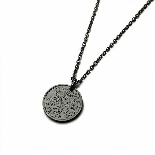 【誕生石】ヴィンテージシックスペンスネックレス-ブラック/バースストーン
