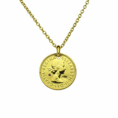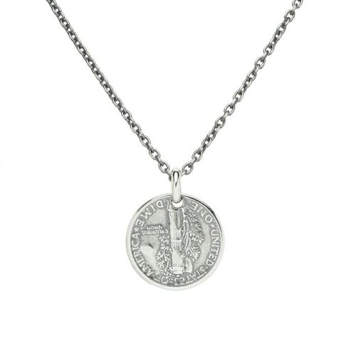【誕生石】ヴィンテージマーキュリーコインネックレス-シルバー/バースストーン