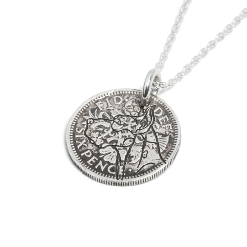 【誕生石】ヴィンテージシックスペンスネックレス-ロジウム/バースストーン