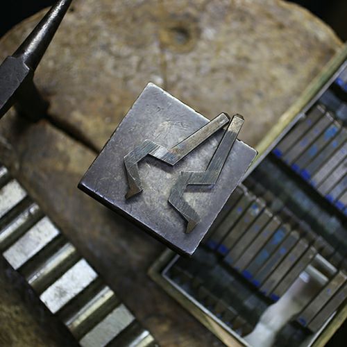 丁寧に磨きをかけ鏡面仕上げを施し、極めてソリッドな造形に掘られた刻印が存在感を放ちます。