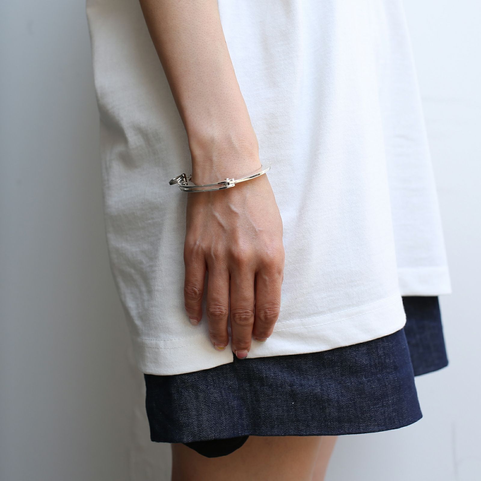 バングルとは、ブレスレットの一種で、腕に付けるジュエリーであるブレスレットの中で、留め具が付いていない形状のものをバングルと呼びます。