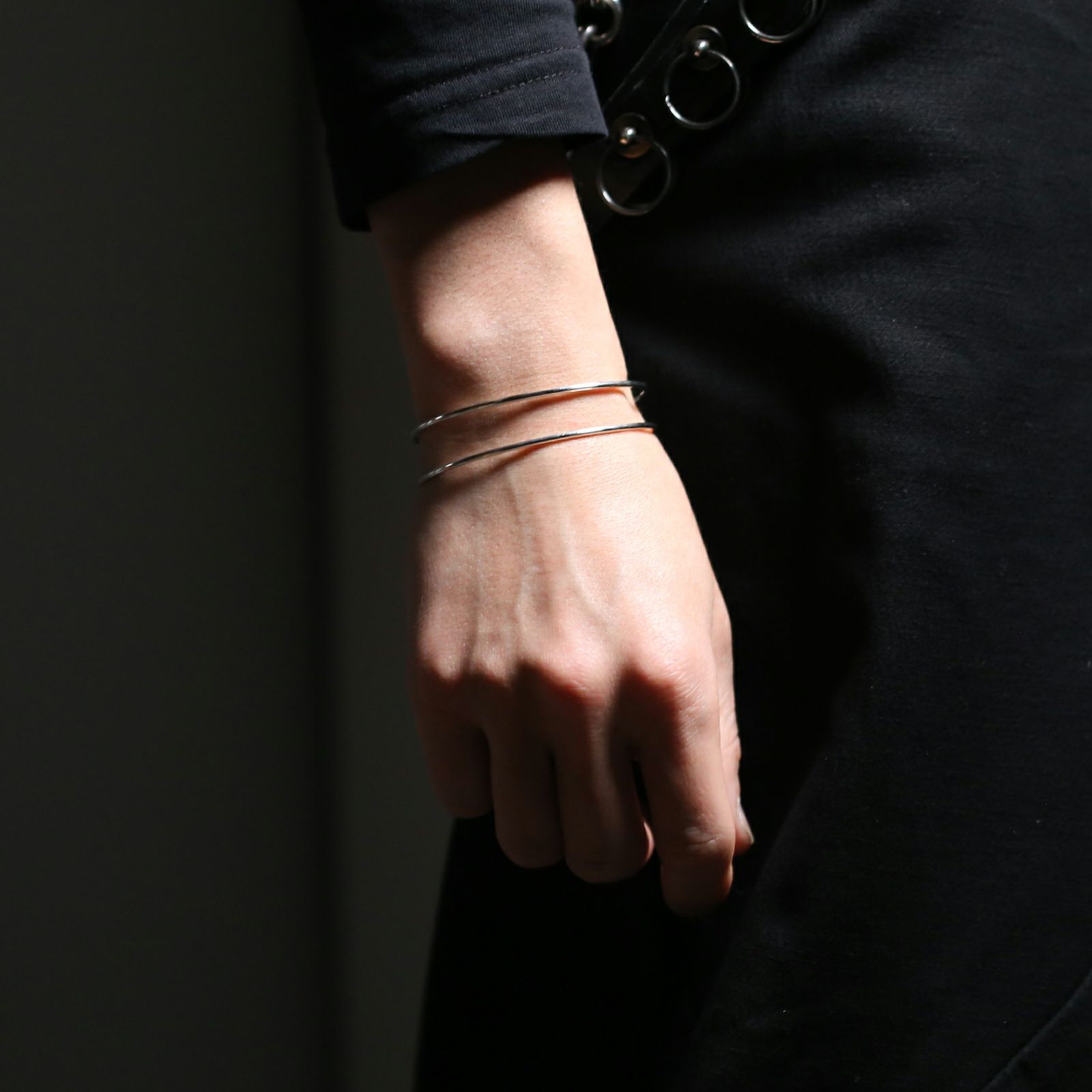 衝撃的なパンクイズムの象徴にも使われる“安全ピン”をアクセサリーに転換した、シンプルなバングル。