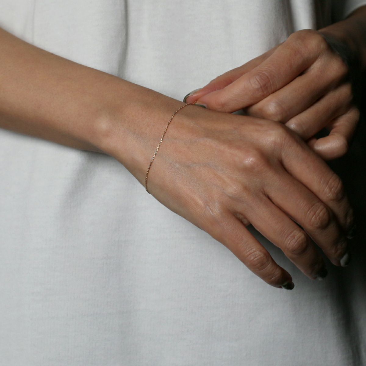 こちらは18金を使用したシンプルなあずきチェーンブレスレット。