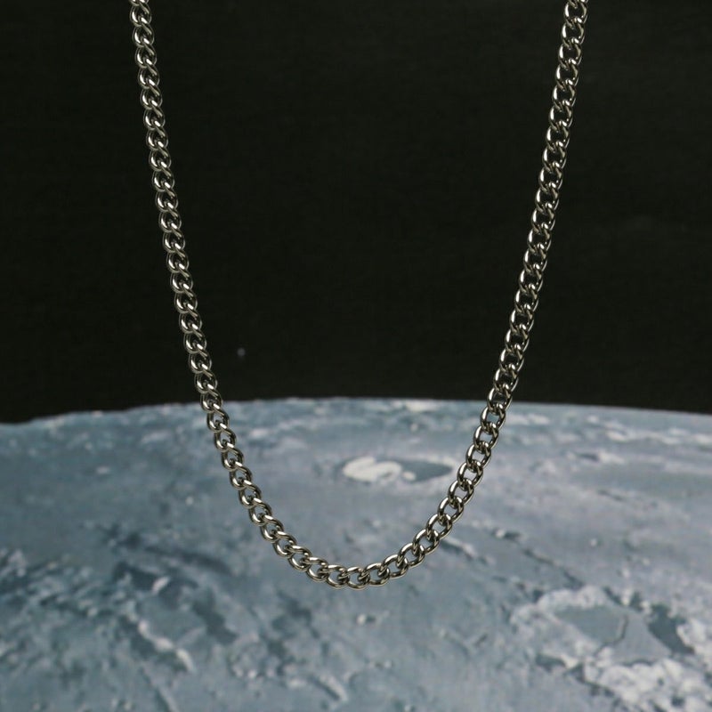 未来素材と呼ばれるチタンを使用した喜平チェーンネックレス(太)。
