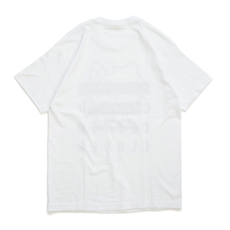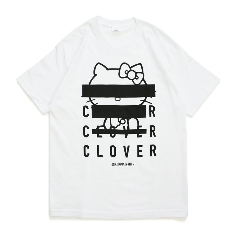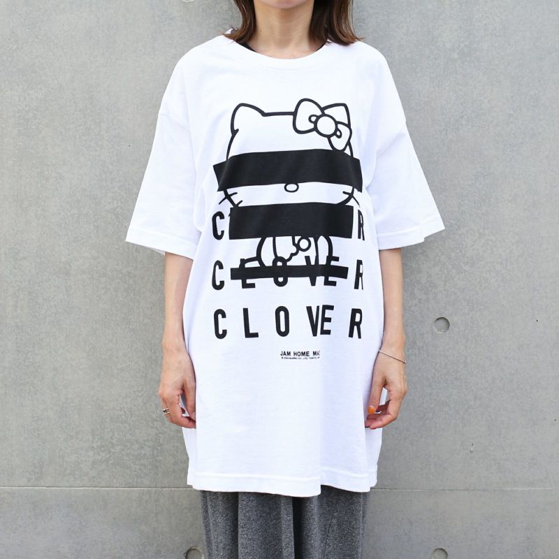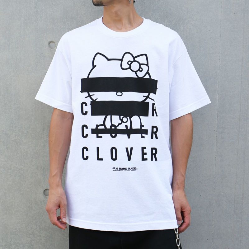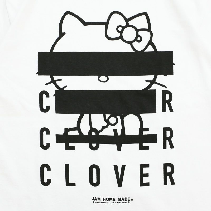 フロントに大きくプリントされたハローキティのキュートなビジュアルにCLOVER&黒バーグラフィックをレイヤードした大胆なデザイン。