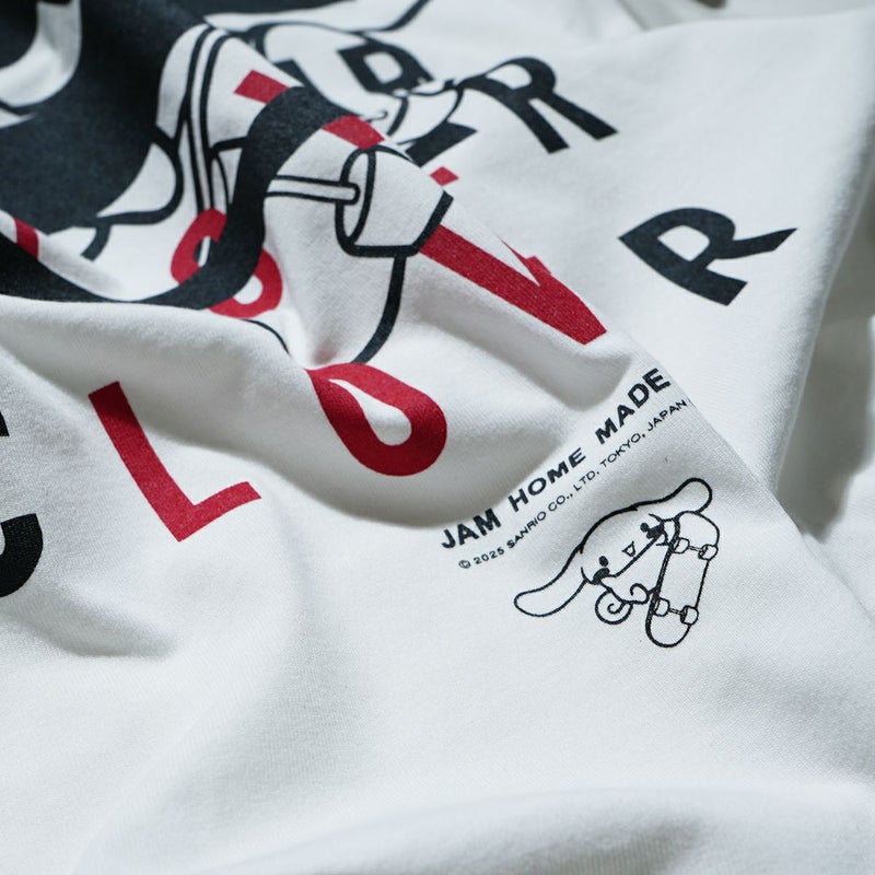 辛口な印象のサンリオキャラクターたちのデザインが新鮮で、大人のファッションにも取り入れやすいモード&遊び心あふれる一着。