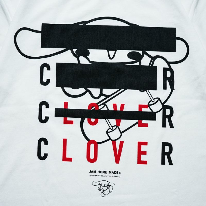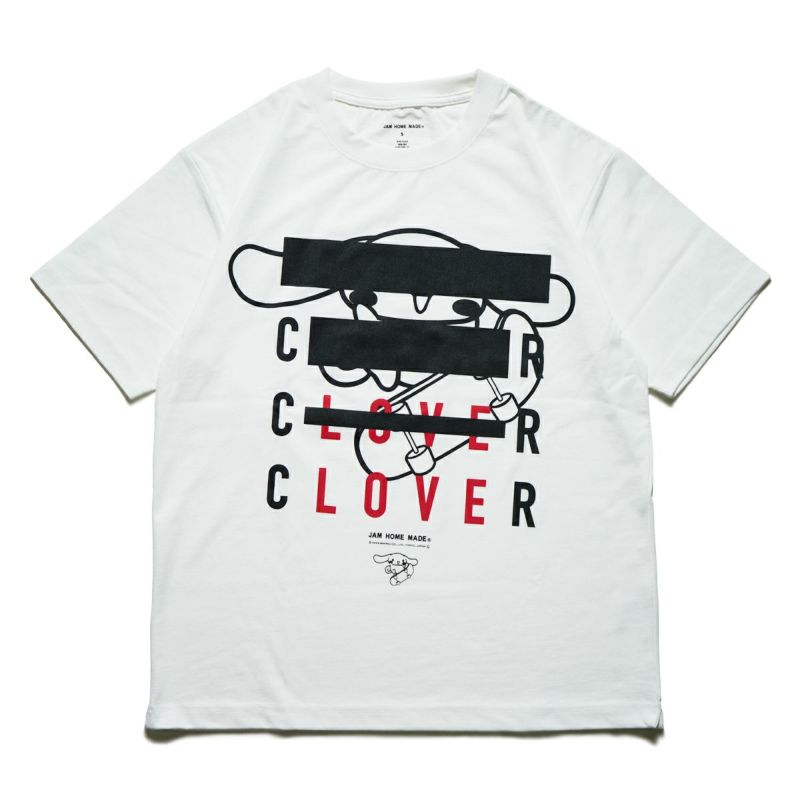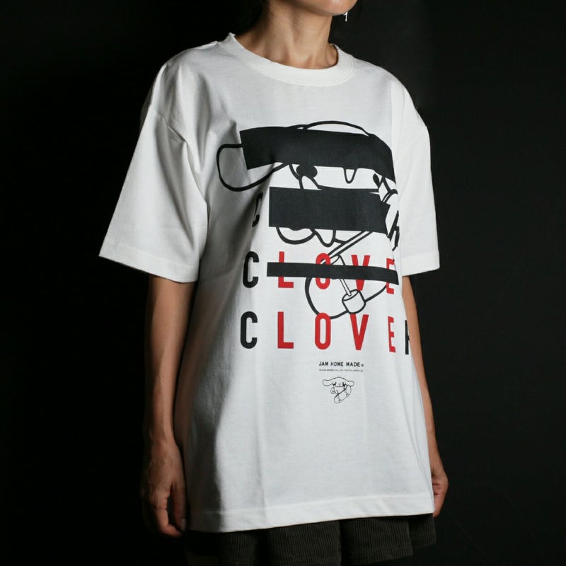 その表現として「愛LOVE」を目隠し黒目線の (黒いバー=黒バー)で隠した大胆なグラフィックに黒バーでEYE(アイ)を隠した幸せの四つ葉のクローバーをモチーフにしたTシャツ。
