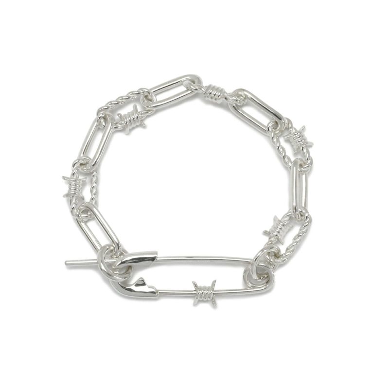 "安全じゃないピン" 有刺鉄線 & チェーン コンビネーション ブレスレット L