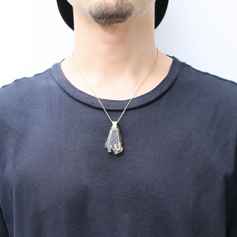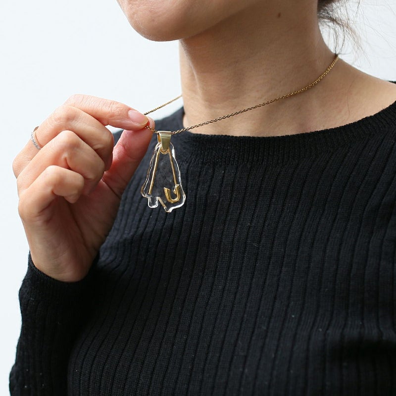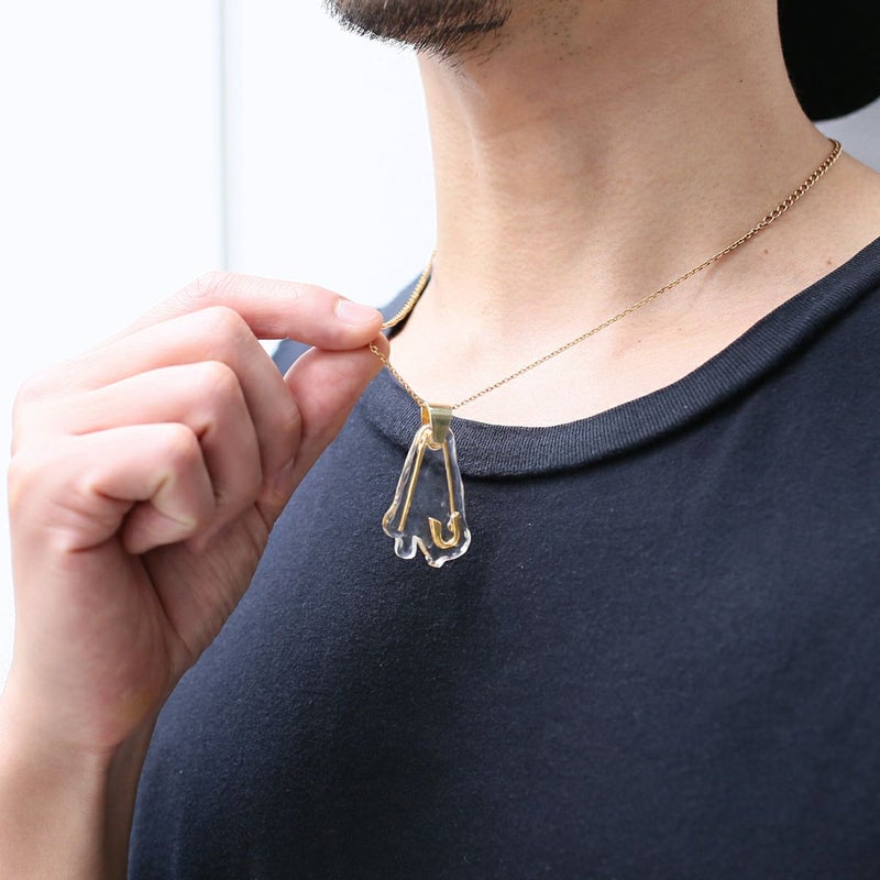 祈りを込めて、氷をイメージした中にブランドの代名詞である安全ピンを封じ込めました。氷を融かすのは、地球温暖化による気温上昇ではなく、相手を思う温かな心であってほしいと願う、パラドックスなフリーズプロダクト。