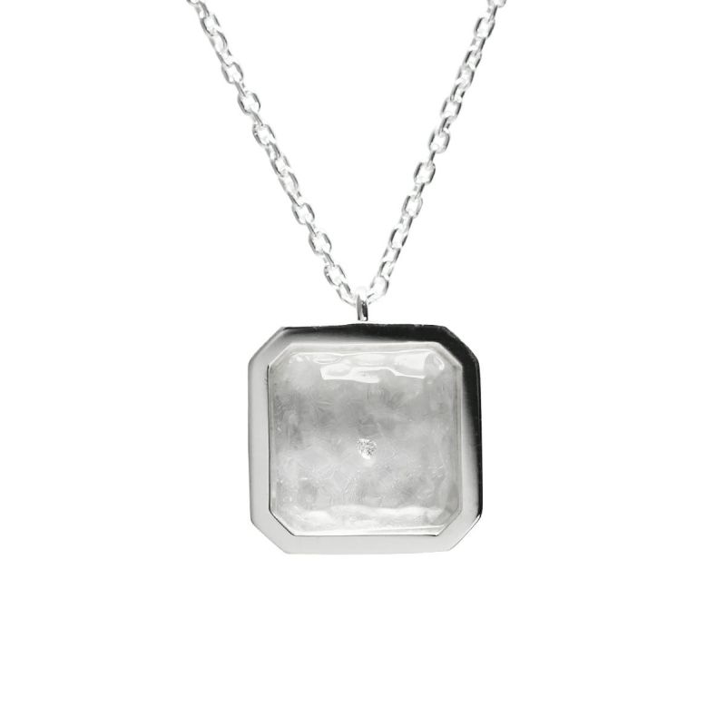 天然ダイヤモンドを覆う透明無垢な氷に見たてたアクリル樹脂。台座はシルバー925製。