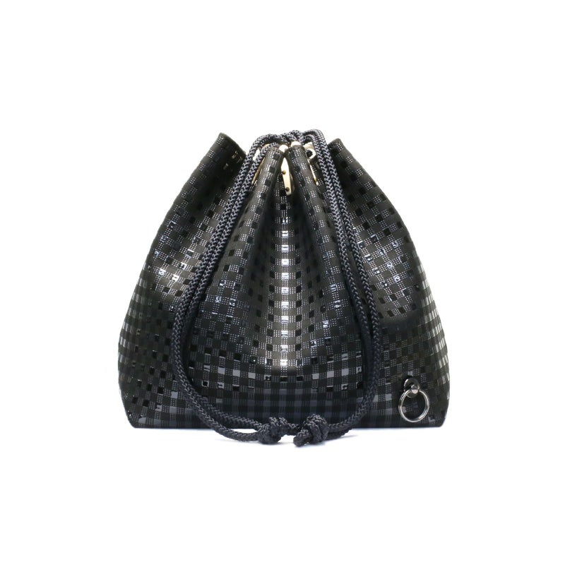 伝統革工芸「印伝」の総本家の印傳屋の巾着をベースに、JAMのアイデンティティ、アタッチメントパーツを配しています。