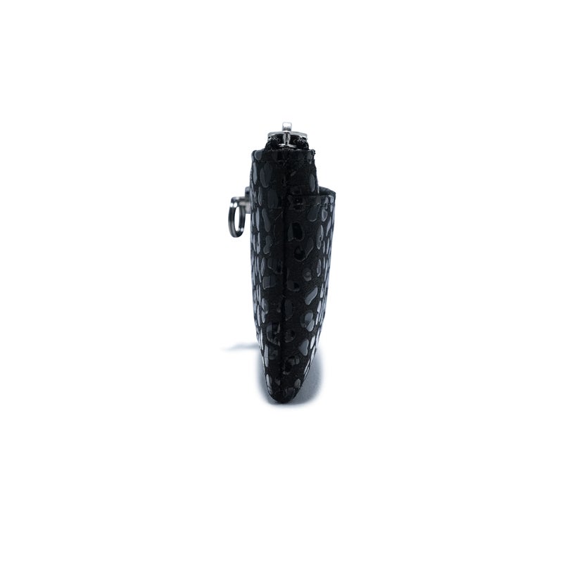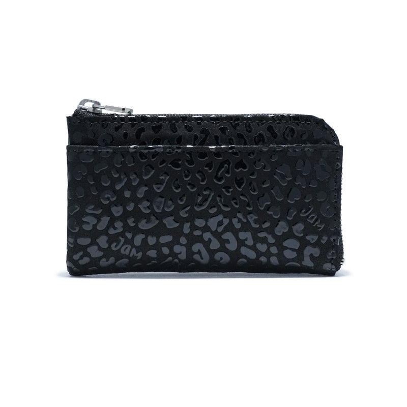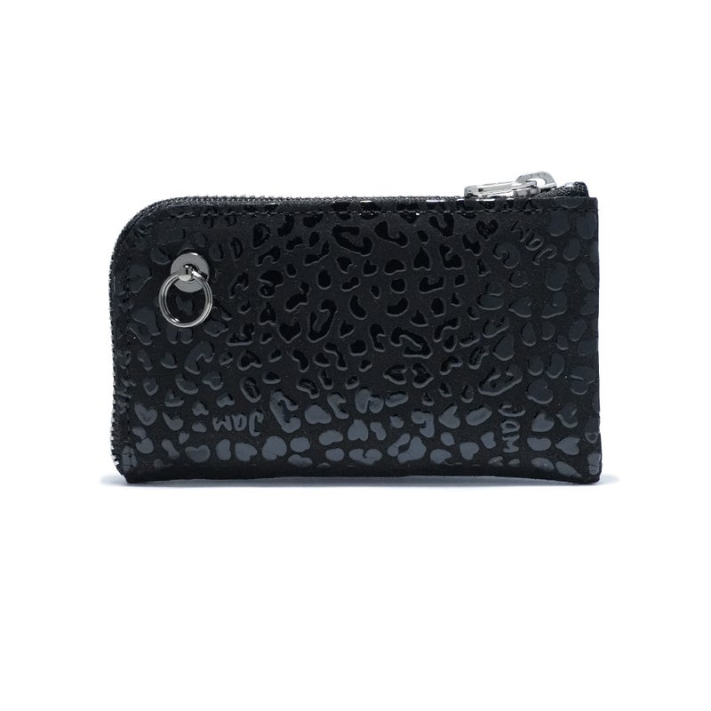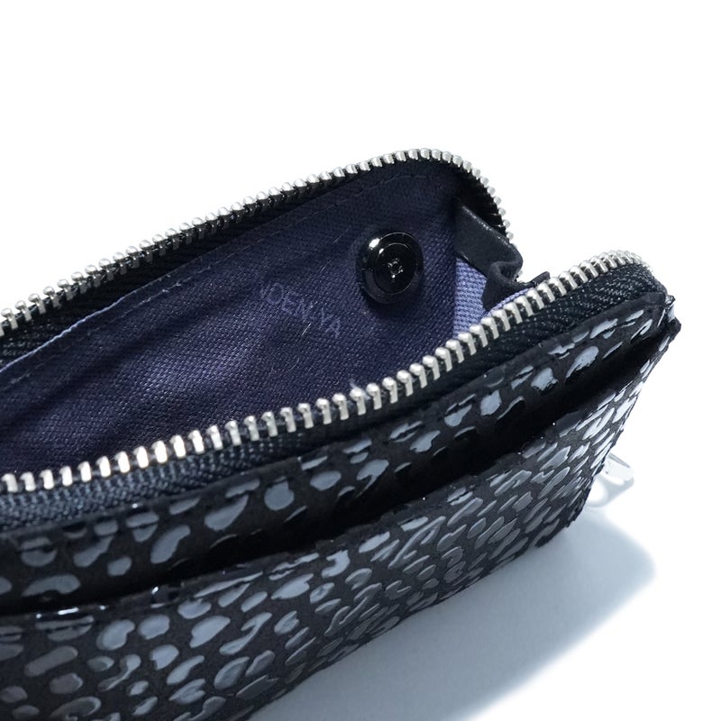 柄のモチーフは「LEOPARD(レオパード)」。“JAM”(=押しつぶす)をテーマに一枚の強靭な革に対して、複数のエキゾチックレザーの型押しを施しマテリアルを追求する技術「ジャムニマル」を印伝技法で表現しました。