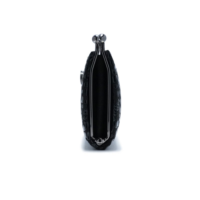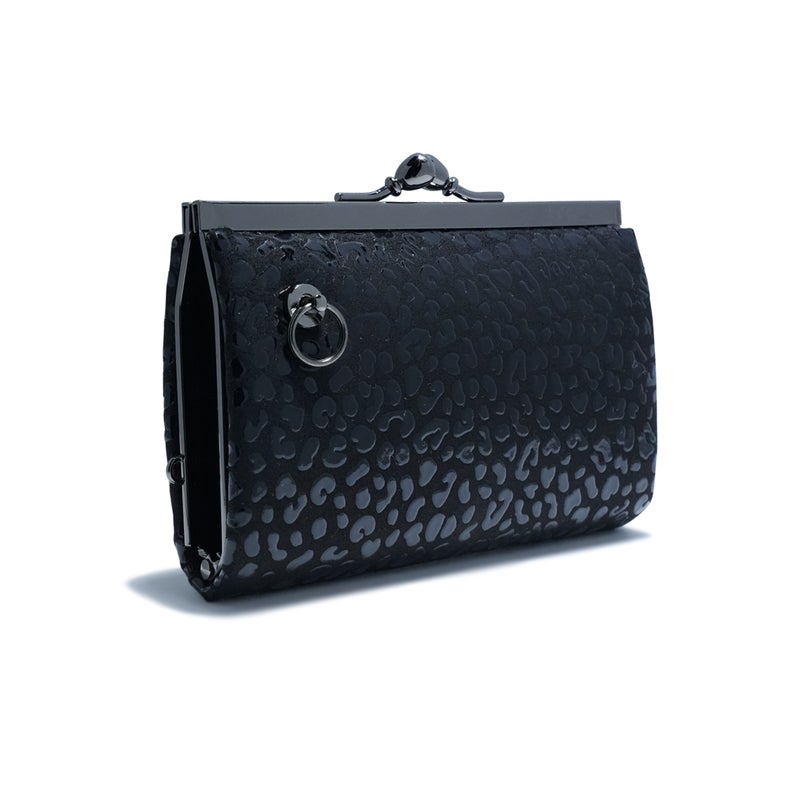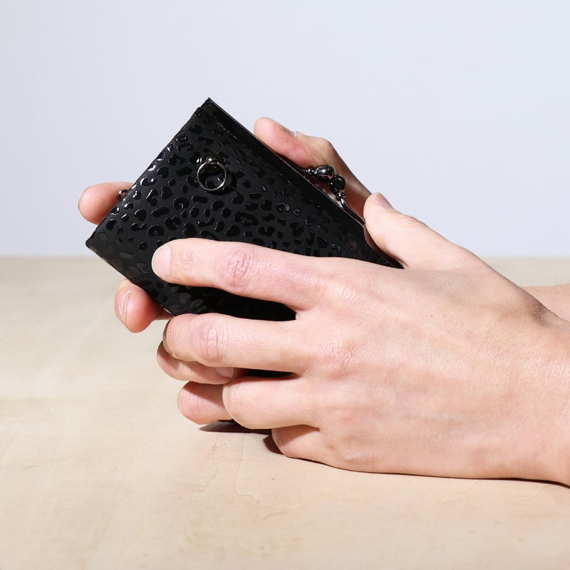 柄のモチーフは「LEOPARD(レオパード)」。“JAM”(=押しつぶす)をテーマに一枚の強靭な革に対して、複数のエキゾチックレザーの型押しを施しマテリアルを追求する技術「ジャムニマル」を印伝技法で表現しました。