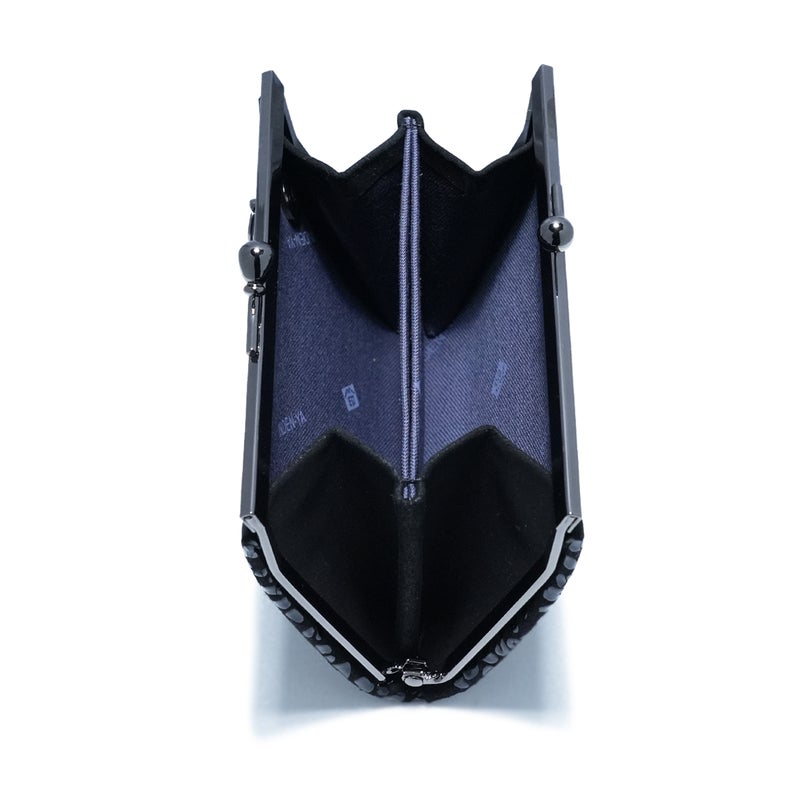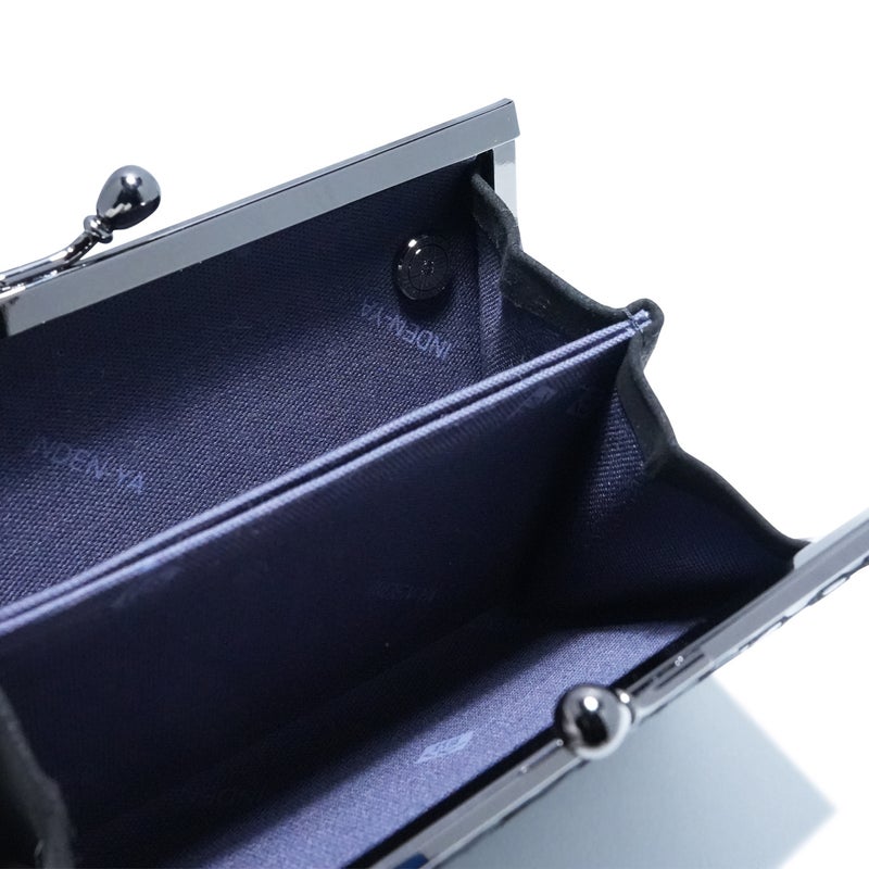 口金を開くと中身が確認しやすく機能的。両面にそれぞれ札入れとカードケースを配する事により、セパレートして使いこなすなど、抜群の収納力を誇ります。小銭や小物は整理して大きな収納へお札やカード類はスマートに中仕切りへ収納できます。金具がきらりと光り上品なイメージが漂い、手に持ちやすい薄さもポイントです。