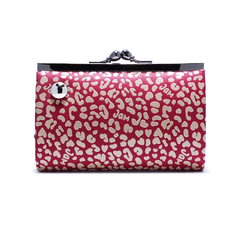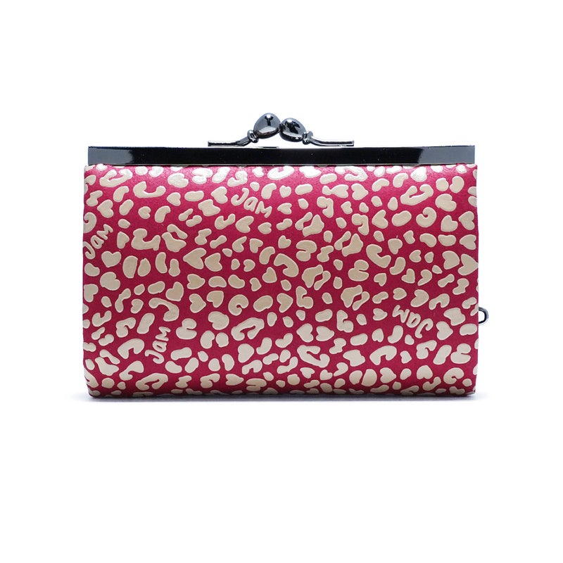 柄のモチーフは「LEOPARD(レオパード)」。“JAM”(=押しつぶす)をテーマに一枚の強靭な革に対して、複数のエキゾチックレザーの型押しを施しマテリアルを追求する技術「ジャムニマル」を印伝技法で表現しました。
