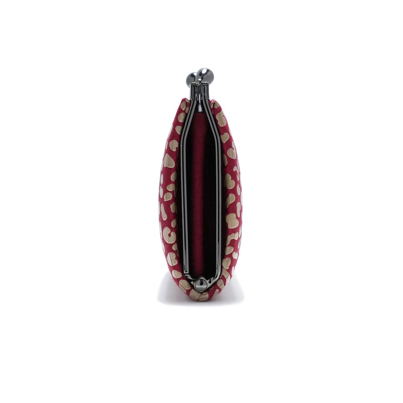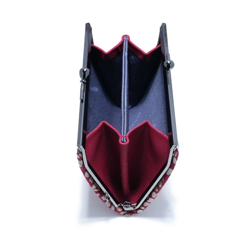 口金を開くと中身が確認しやすく機能的。両面にそれぞれ札入れとカードケースを配する事により、セパレートして使いこなすなど、抜群の収納力を誇ります。小銭や小物は整理して大きな収納へお札やカード類はスマートに中仕切りへ収納できます。金具がきらりと光り上品なイメージが漂い、手に持ちやすい薄さもポイントです。