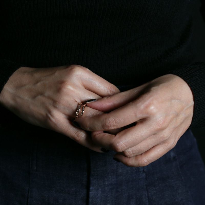 個性的な形状は、ピンクゴールドカラーで上品にまとまっています。