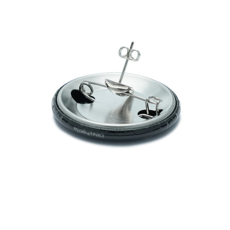 特徴的な“目”の空洞にバッジを通すことができるギミックを備え、アクセサリーとバッジという異物の融合が可能。本来、衣服やバッグに付けることが多いバッジを、ピアス(リング、ネックレス、ブレスレット)などのアクセサリーに装着することで、指元や耳元、手首にまで表現の幅を広げる新発想。(実用新案登録済み)
