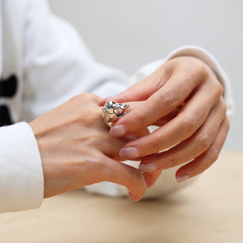 JAM HOME MADEが得意とするSILVER925を使用。メカニカルでありながら彫刻のような存在感を放ち、身につける人の個性に寄り添う。
