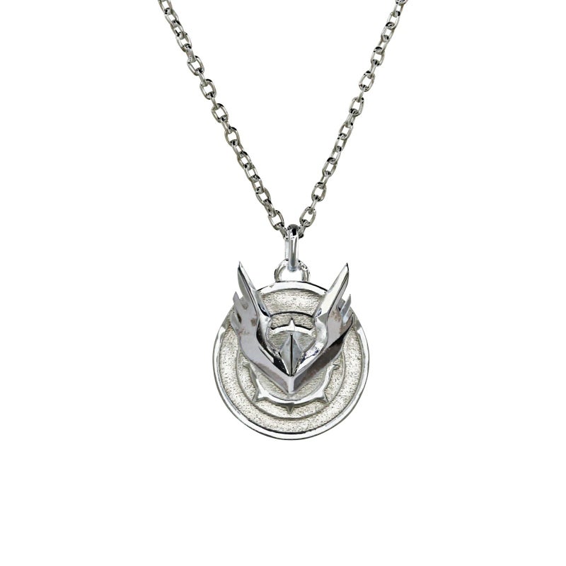 作品の世界観に浸りながらもさりげなく身につけられる、シンプルなコイン形状をベースに、世界平和監視機構コンパスのエンブレムを施した。
