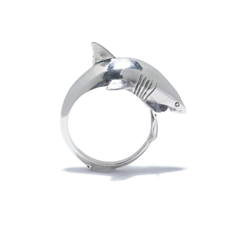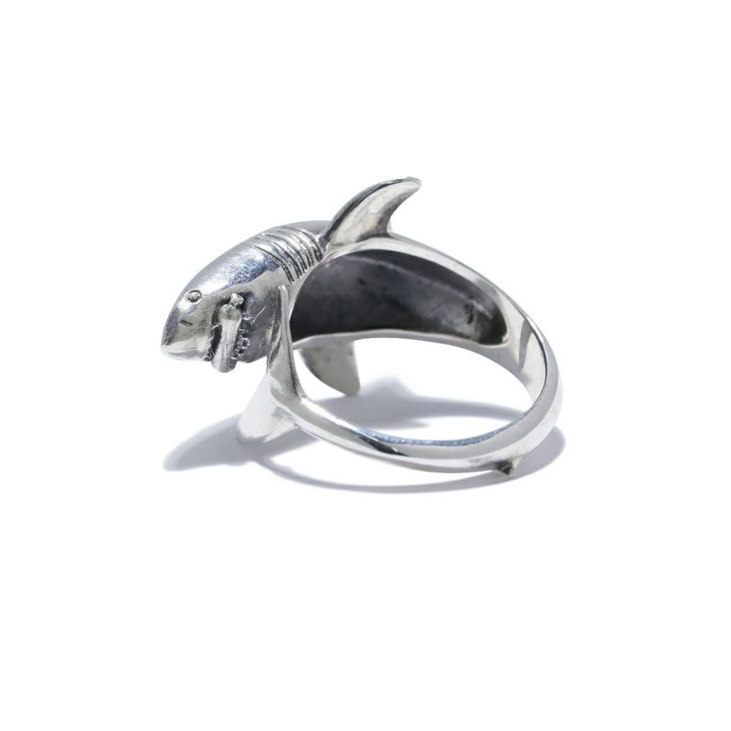 『ジョーズ』のサメを立体的に表現したリングは、躍動感を表現するためにエッジかつ、全体を奇麗な曲線でまとめました。フリーサイズ風の仕様となっていますので、付け心地は良好。サイズ展開豊富ですので、プレゼントやギフトにも最適なアイテムです。使い込むごとにボディのシルバーの良さでもある経年変化を楽しむことができます。