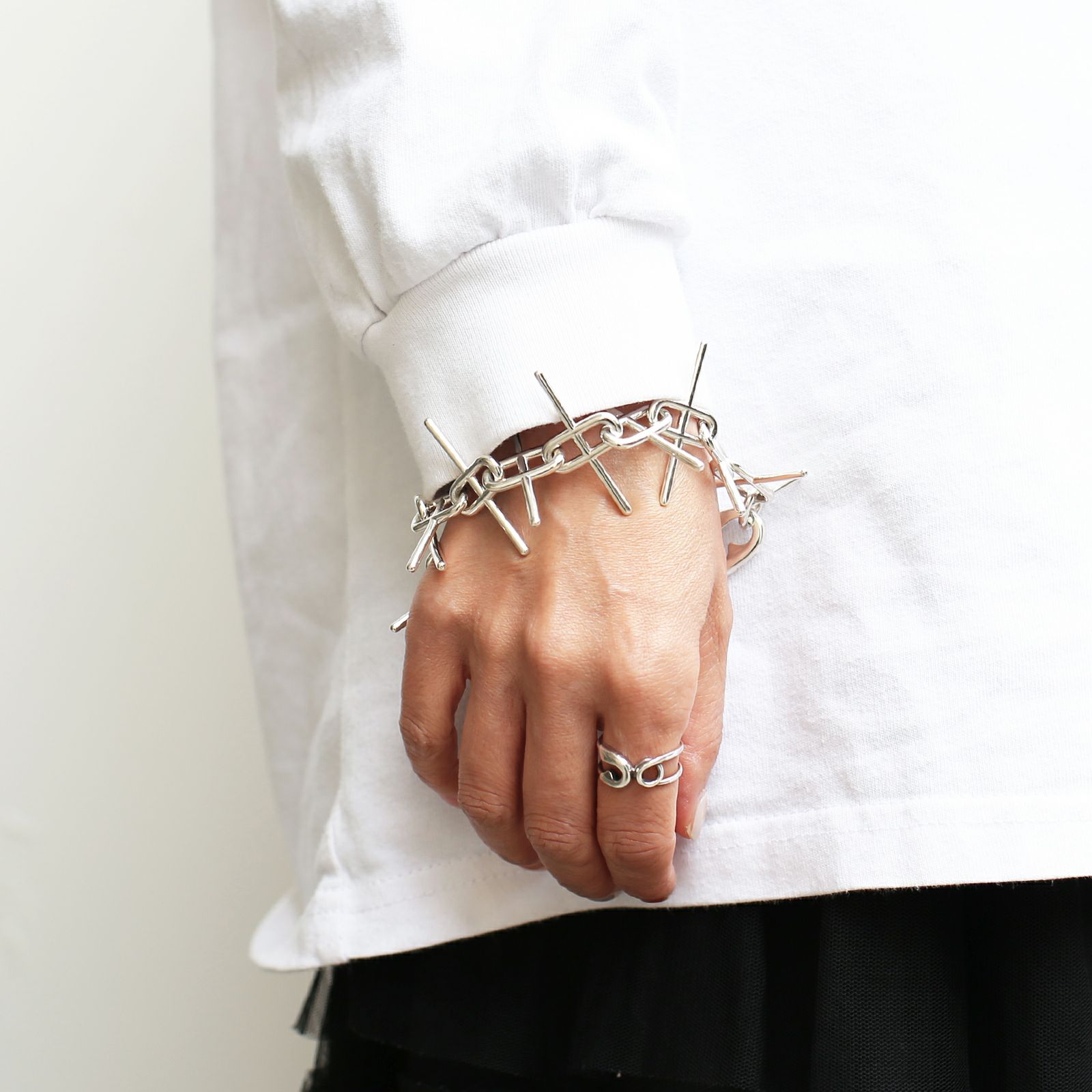 >>"安全じゃないピン" 有刺鉄線 & チェーン コンビネーション ブレスレット L はこちら