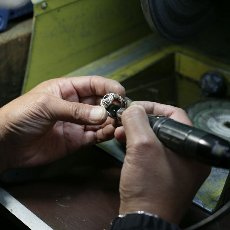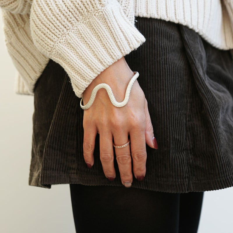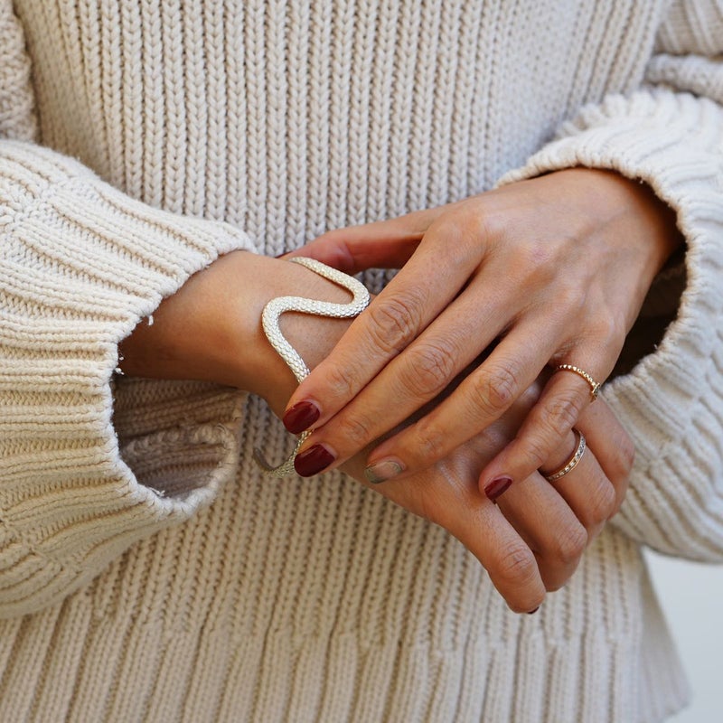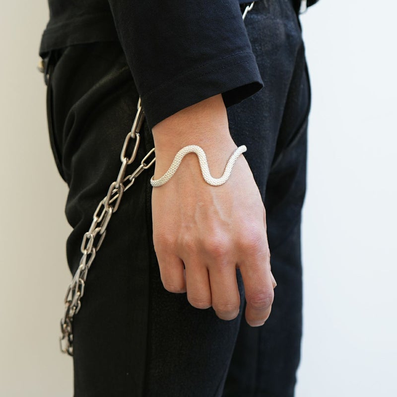 JAM HOME MADEの一級技能士が監修し、蛇の目に見立てた義眼(ドールアイ)を配したシルバー925製のバングル。