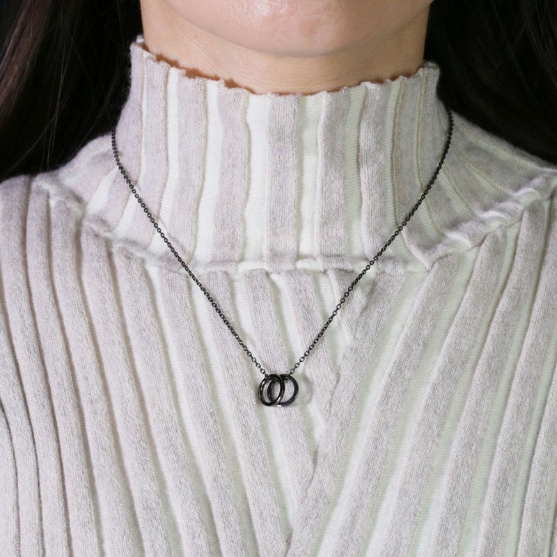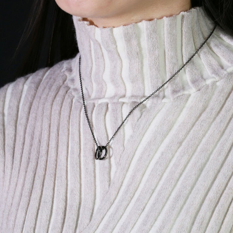 フラットダブル ダイヤモンド ベビーリング ネックレス -シルバー