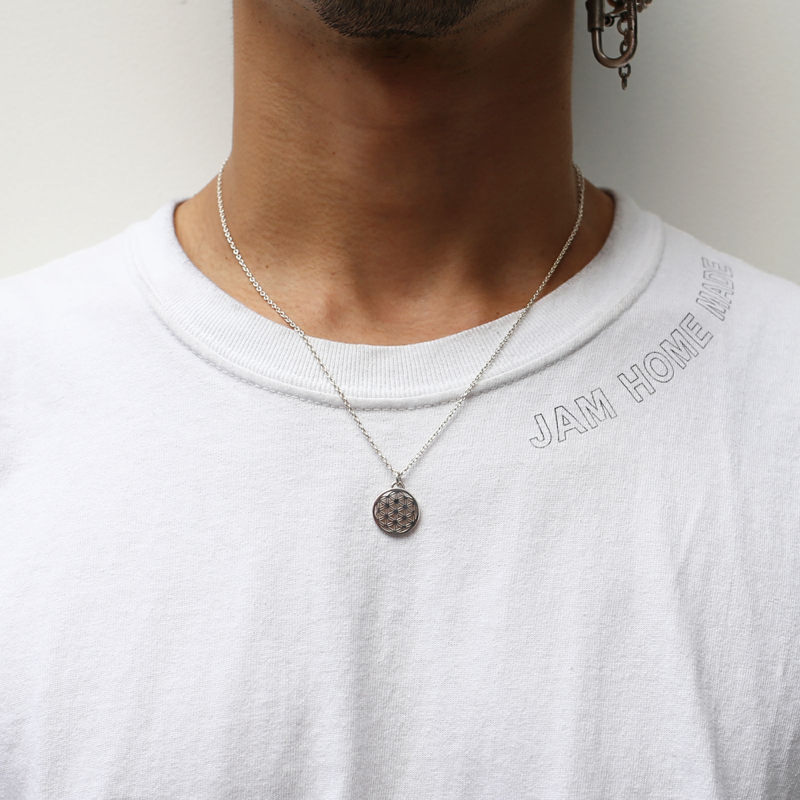 フラワーオブライフをネックレストップにし、シンプルに落とし込みました。