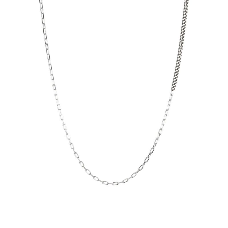 4つの素材(10K,SILVER925,SUS,BRASS)を用いて、ゴールドカラー/シルバーカラーのコンビネーションのチェーンネックレスに仕上げました。