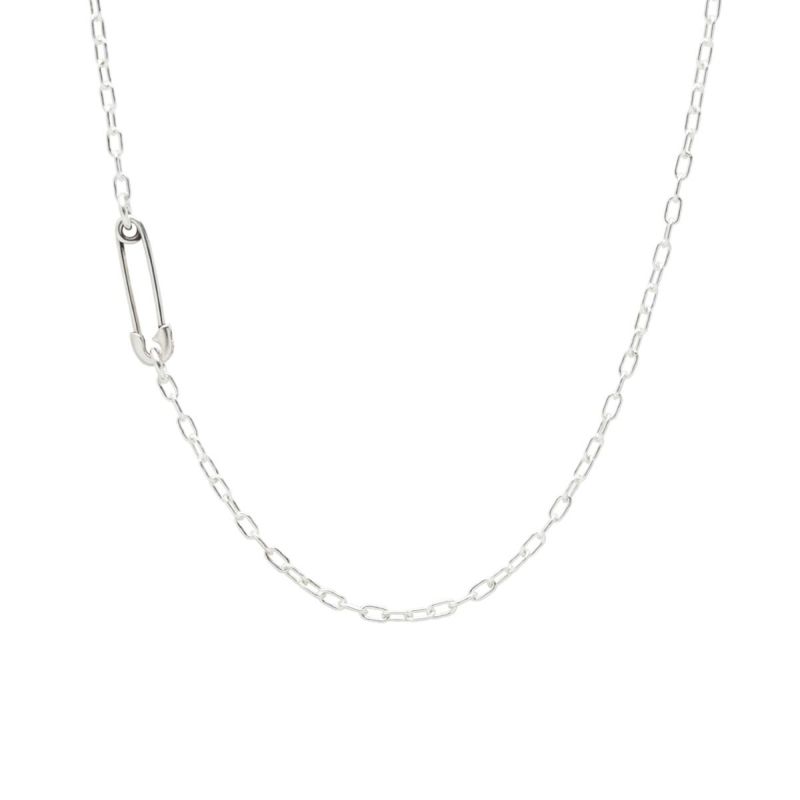 使い勝手の良い、極シンプルなチェーンネックレスで、安全ピンは留め具としてもネックトップとしても機能します。