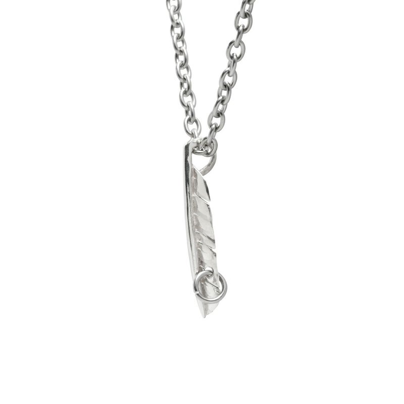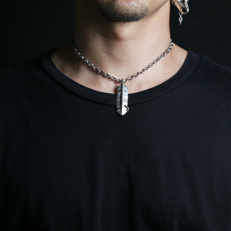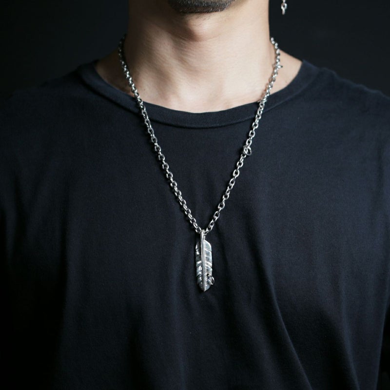 羽根のフェザーはシルバー925。ネックレスのチェーンはアレルギー対応のサージカルステンレス。