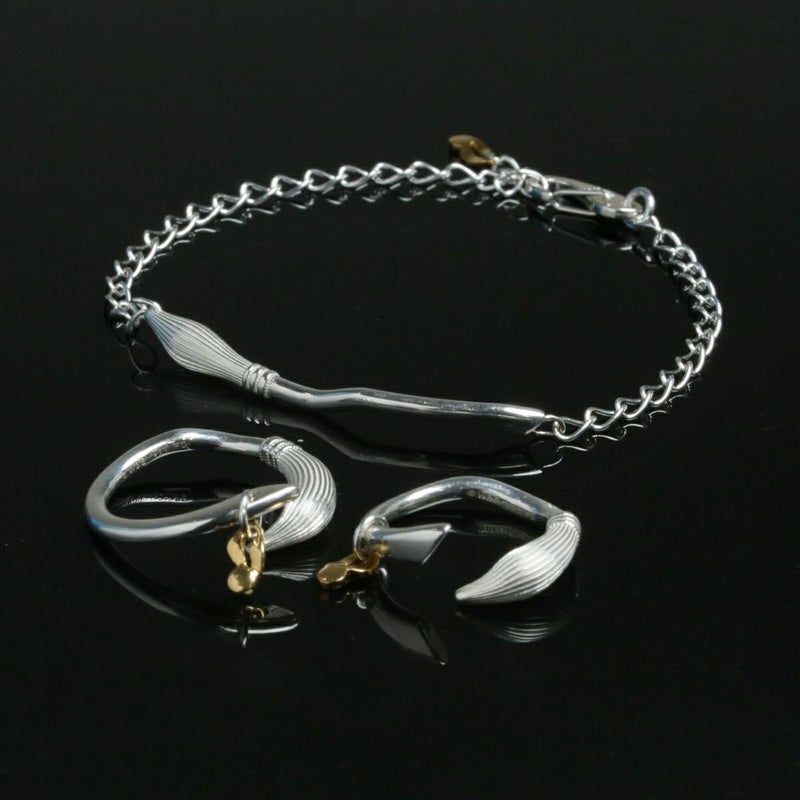 映画を代表するモチーフの一つ、ハリー愛用の箒「ニンバス2000」のジュエリーシリーズは、精巧な立体で再現されたリング、ブレスレット、イヤーカフの3アイテム。