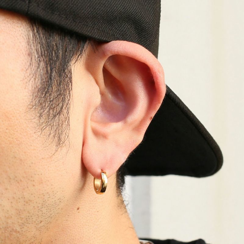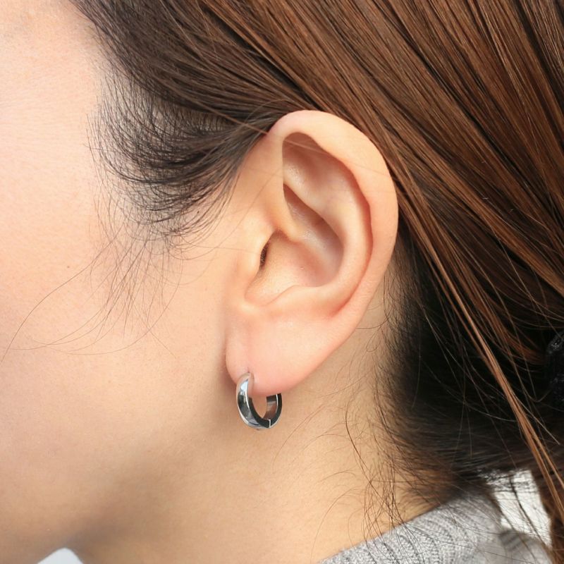"F code" フラット リング フープ ピアス 片耳 / ステンレス(金属アレルギー対応)