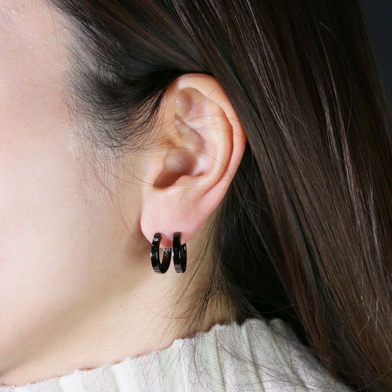 フラットダブル ダイヤモンド ピアス M -シルバー/両耳