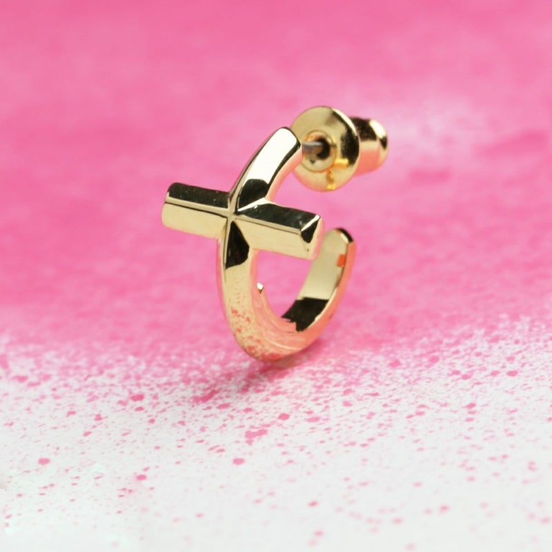 アクセサリーにおいて人気のある、スタッズ、クロスをモチーフにしたピアスで、トレンドに左右されず、ずっと使えるベーシックなモチーフ。