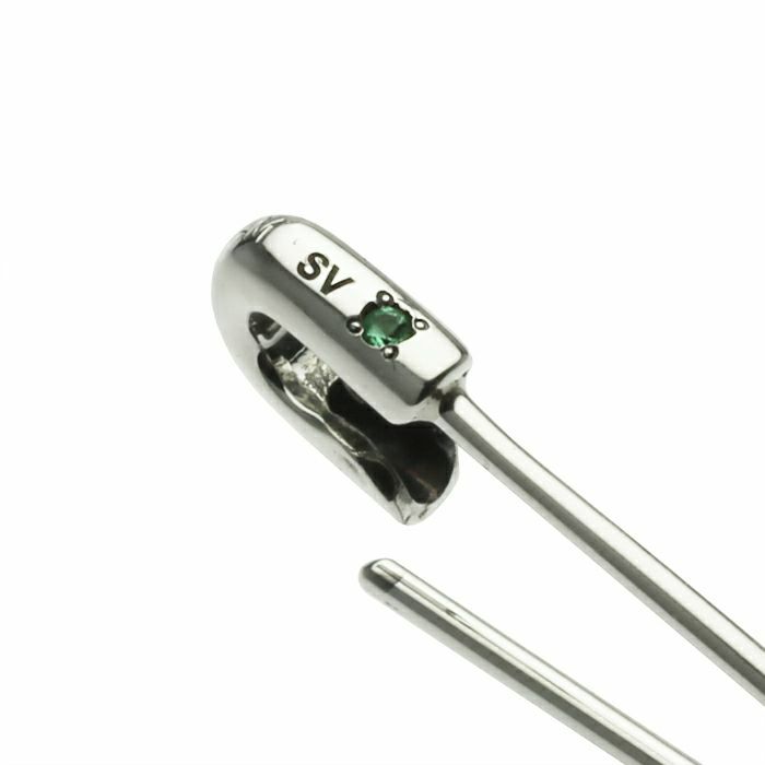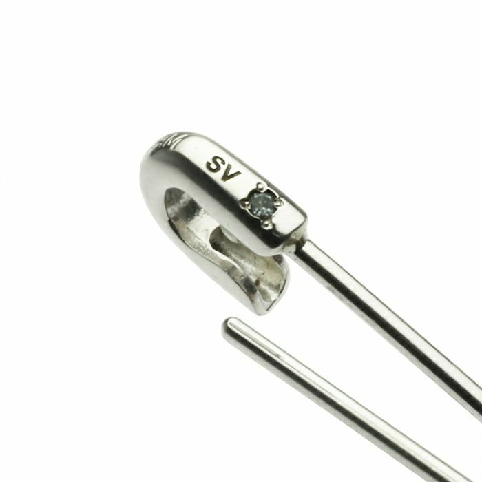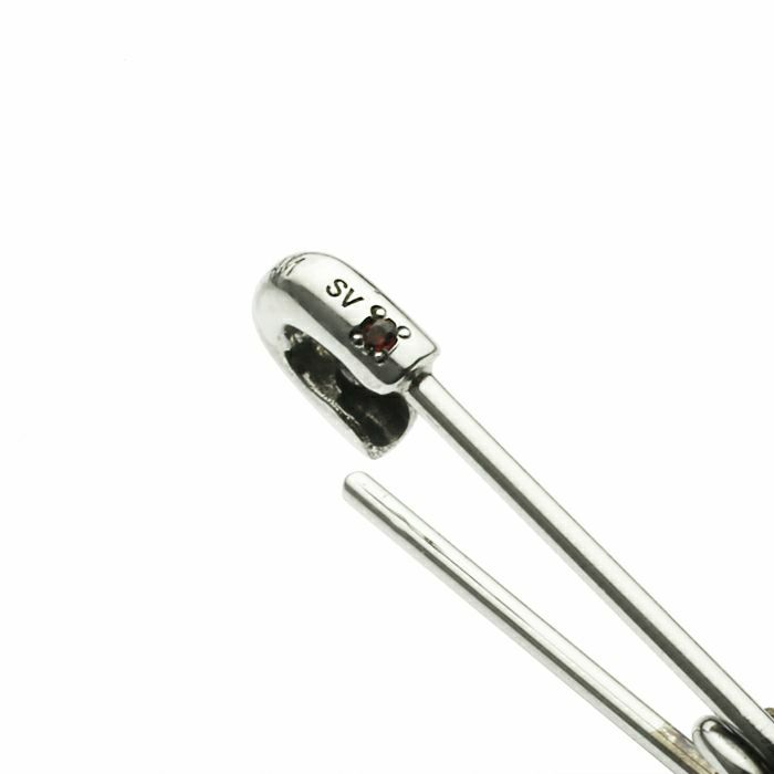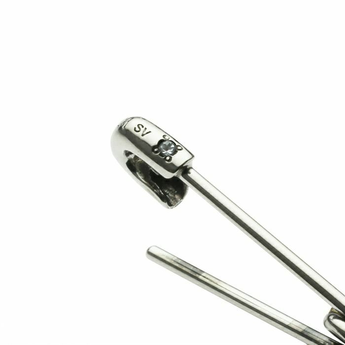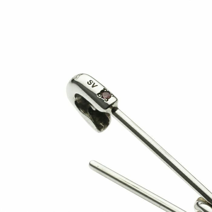 安全ピン (セーフティピン) をモチーフにしたピアスはブランドの創世記からモチーフに取り入れられ、今やブランドの代名詞とも言える。衝撃的なパンクイズムの象徴にも使われる“安全ピン”をアクセサリーに転換。 素材をシルバーに変更し、貴石を加えることで、価値のある装飾品へと昇華させた逸品。