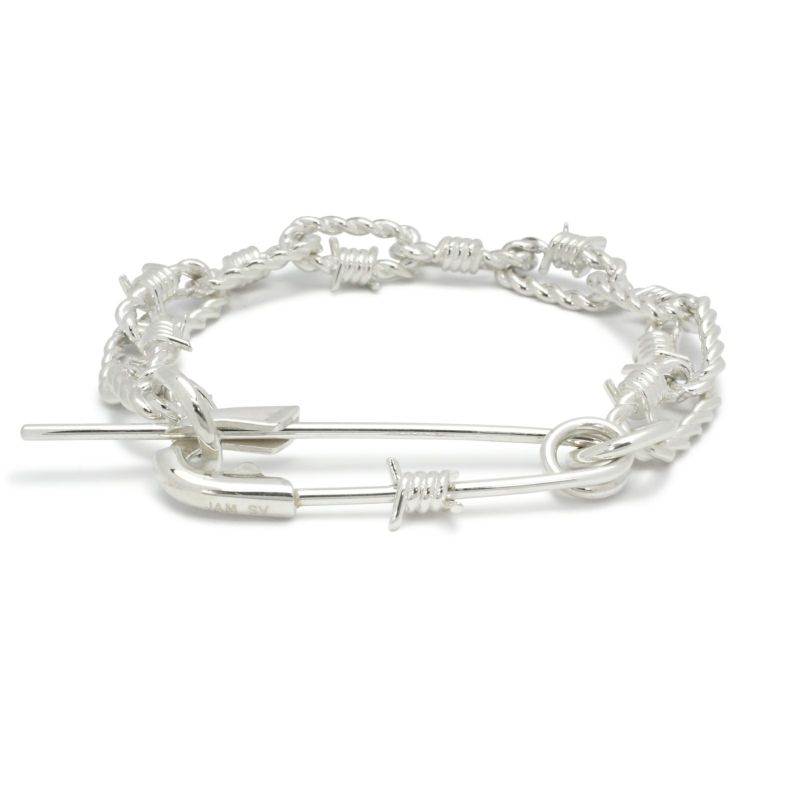 >>"安全じゃないピン" 有刺鉄線 & チェーン コンビネーション ブレスレット L はこちら